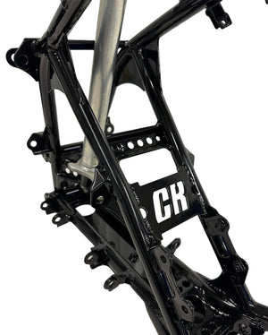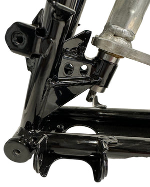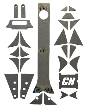 This 29 piece weld on kit was designed to strengthen the OEM frame with gussets and still allow frame flex.